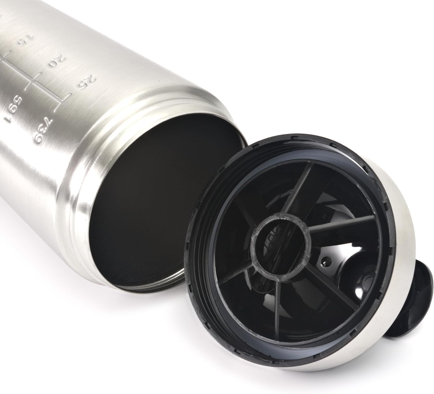 Home Universal® 750ML Botella Gim Shaker de Acero Inoxidable | BPA Free con Mezclador de Tapa Integrado | Vaso Gimnasio con Medidor | Apto para Lavavajillas | Vaso Proteína (Acero)