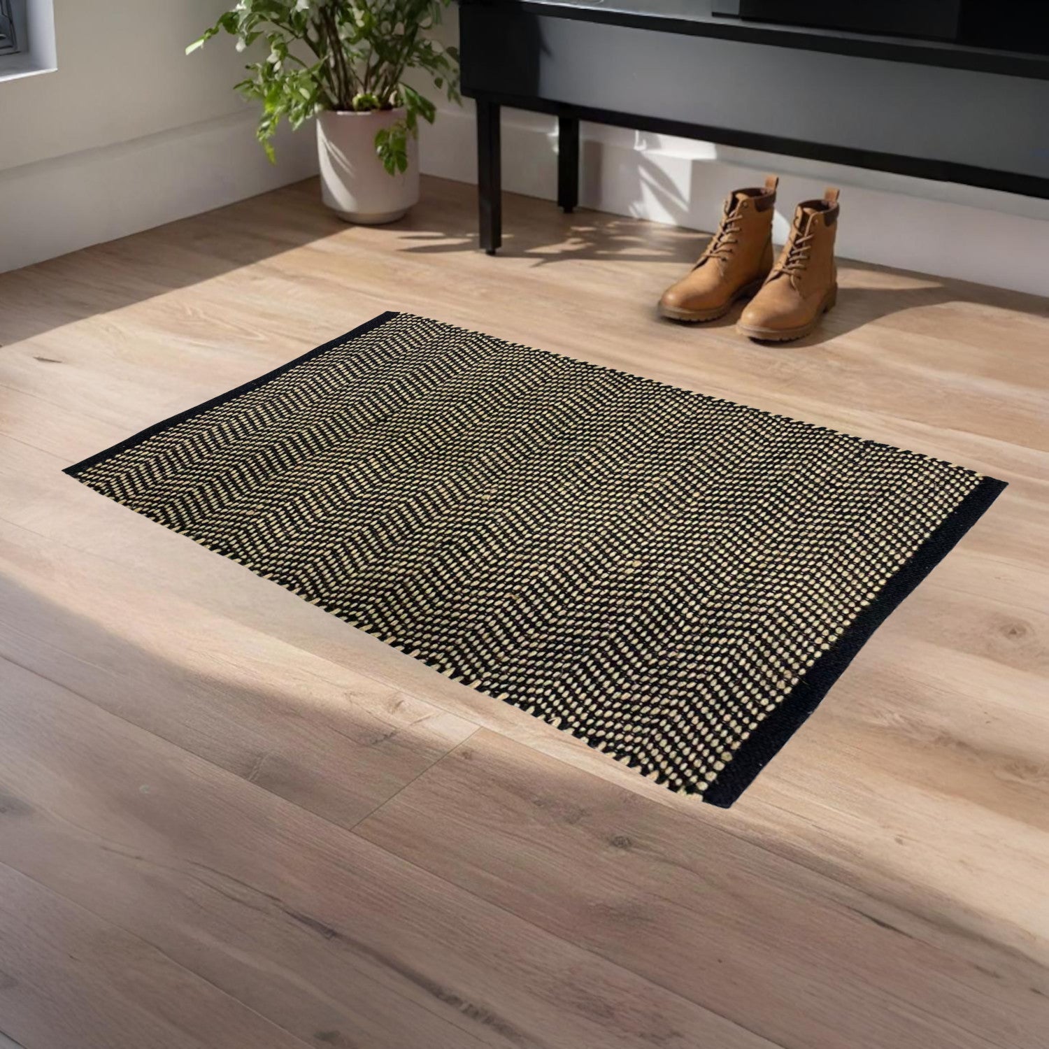 Home Universal® Alfombra Jarapa de Algodón Lavable | Diseño Geométrico Artesanal | Decoración Boho Mediterránea para Salón, Dormitorio, Pasillo y Cocina | Suave, Ligera y Resistente | Zigzag Ébano