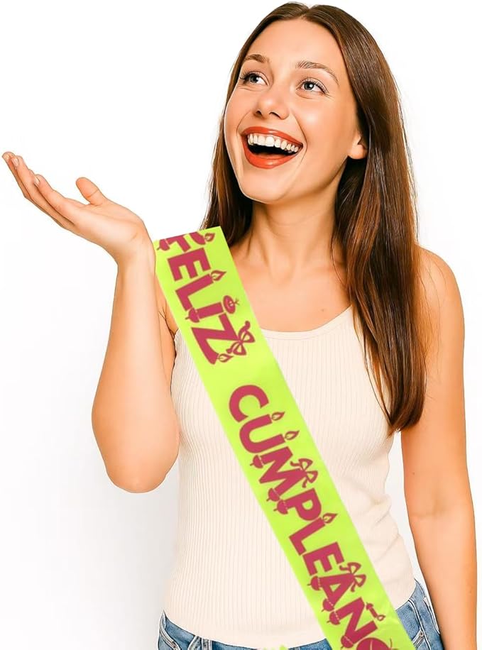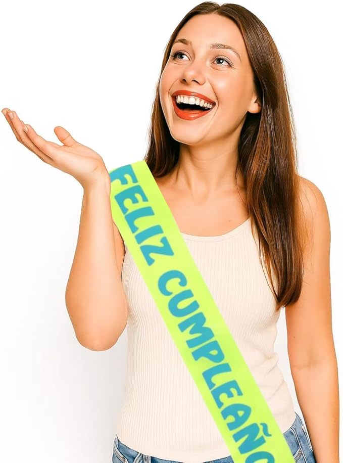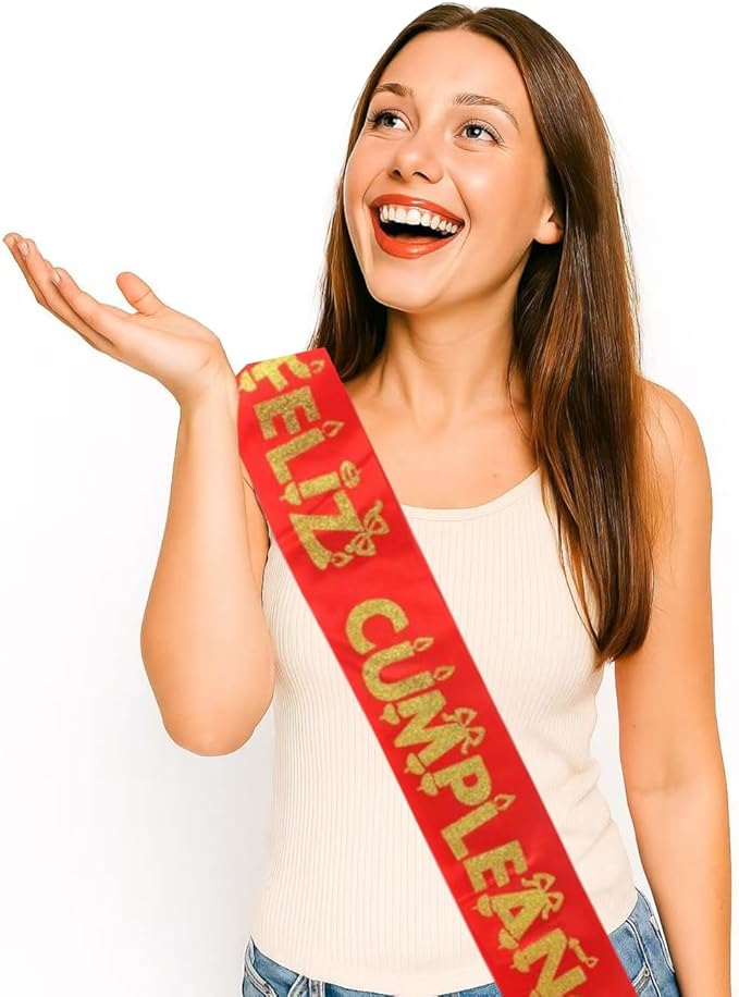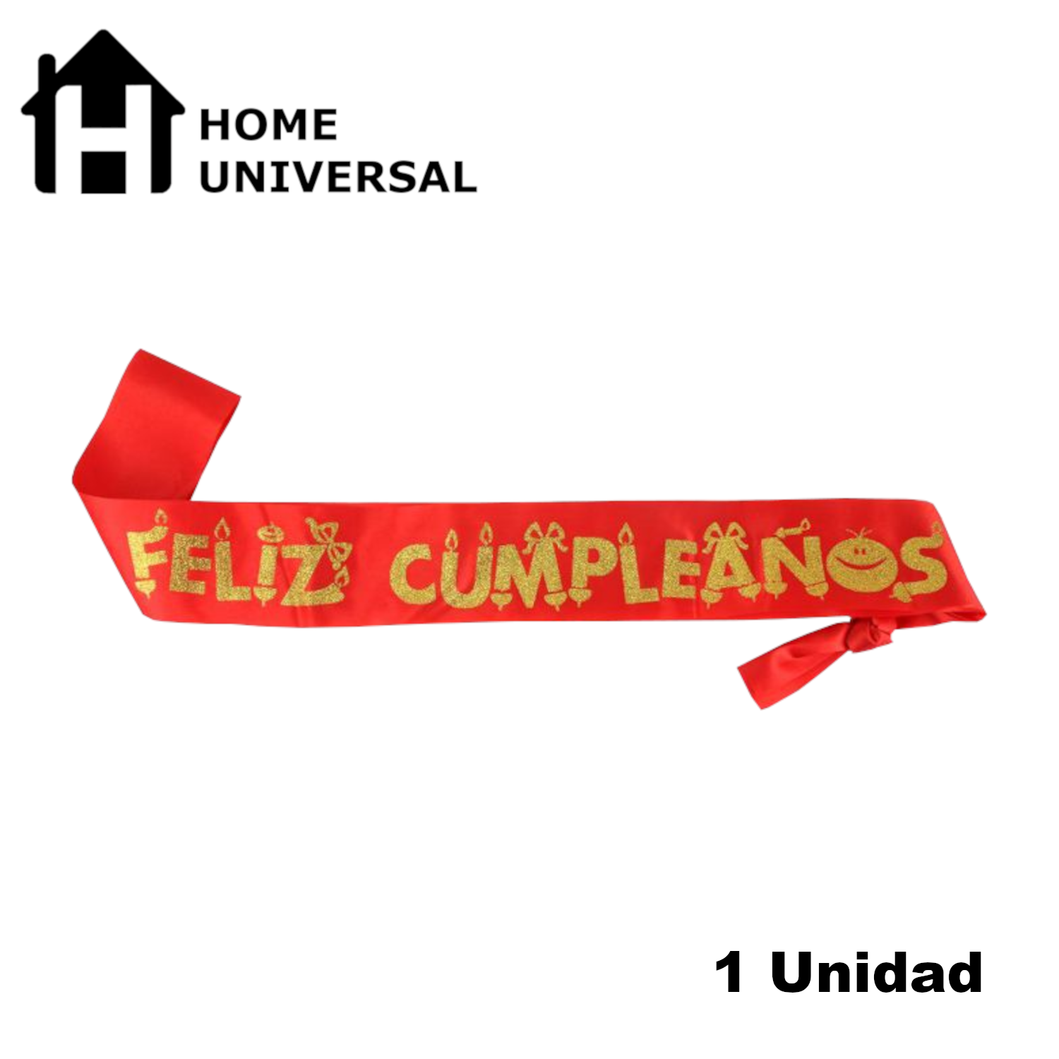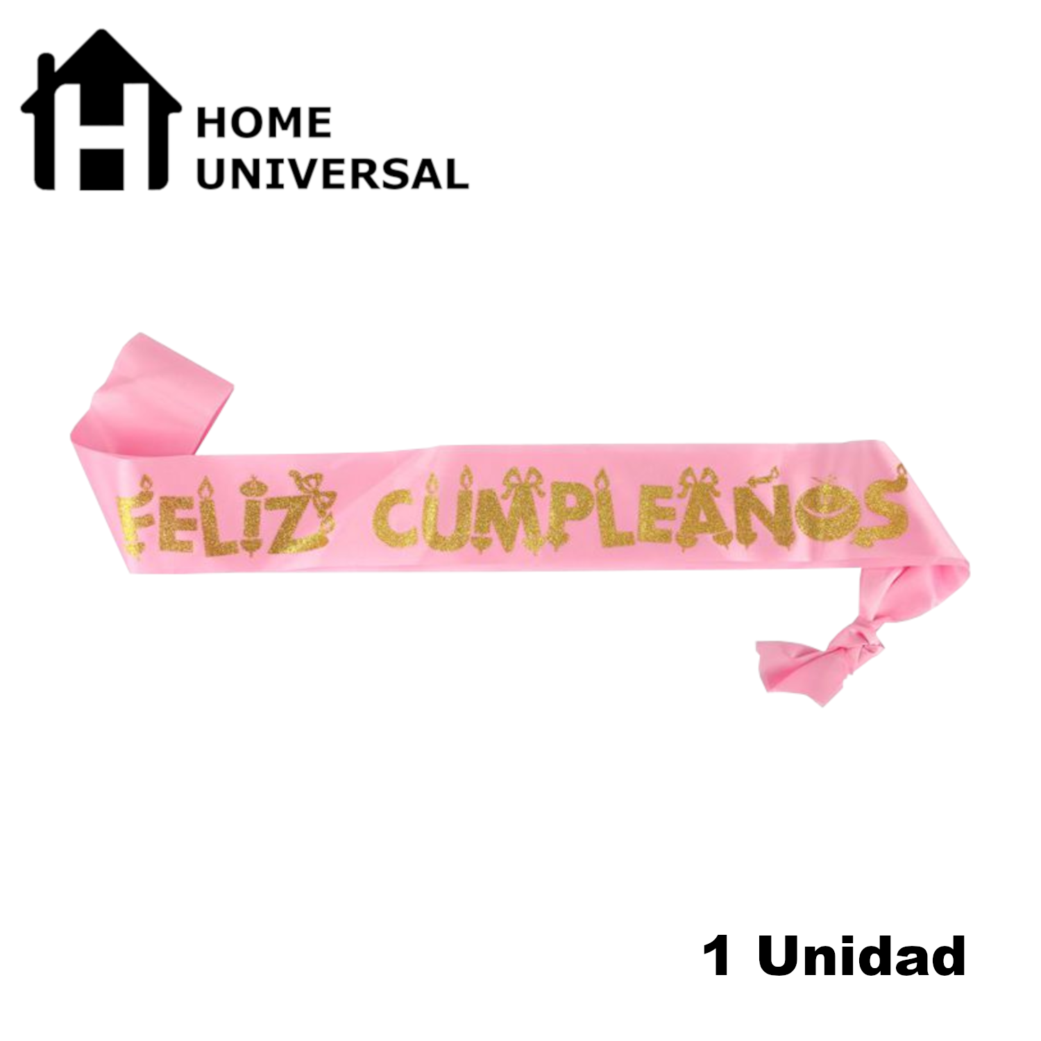 Home Universal® Banda Feliz Cumpleaños – Cinta Decorativa para Fiesta y Photocall, Accesorio para Mujer, Hombre y Niños, Diseño Elegante con Letras Doradas, Ideal para Celebraciones y Sesiones de Fotos (Estampado - 1 unidad)