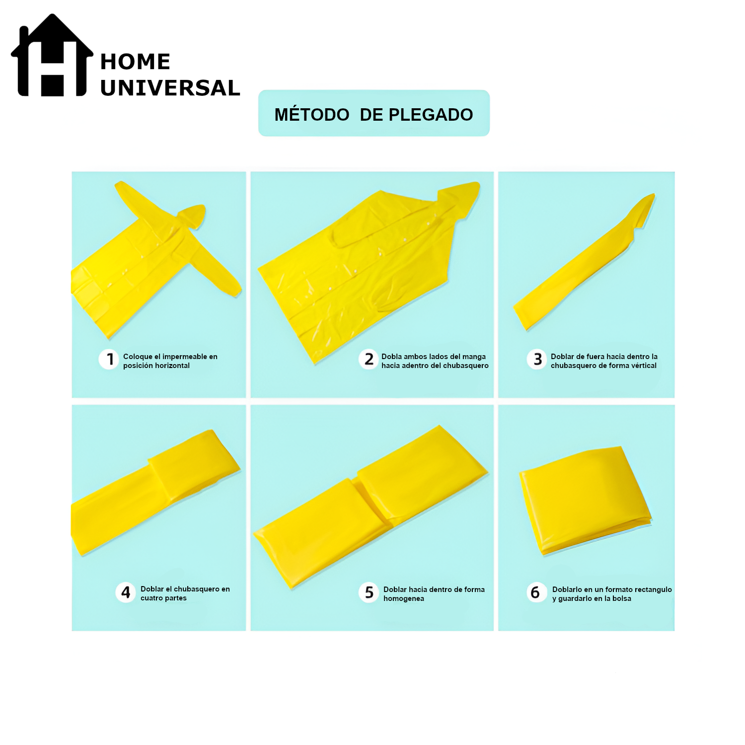 Home Universal® Chubasquero Impermeable Unisex - Material Ligero, con Capucha Ajustable, Plegable, Reutilizable (2 Unidades, Amarillo y Azul - Adulto (145X70CM))