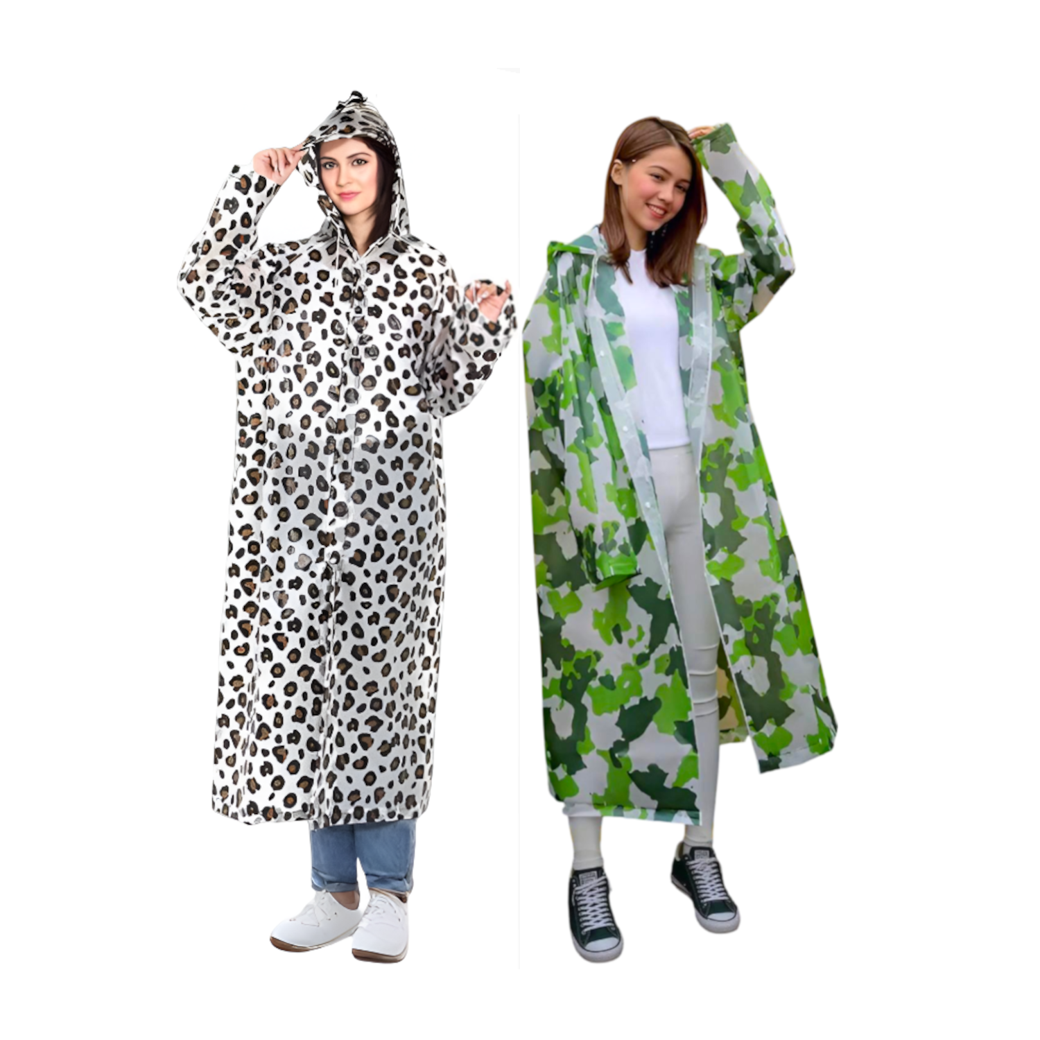 Home Universal® Chubasquero Impermeable Unisex - Material Ligero, con Capucha Ajustable, Plegable, Reutilizable (2 Unidades, Leopardo y Militar - Adulto (138X65CM))