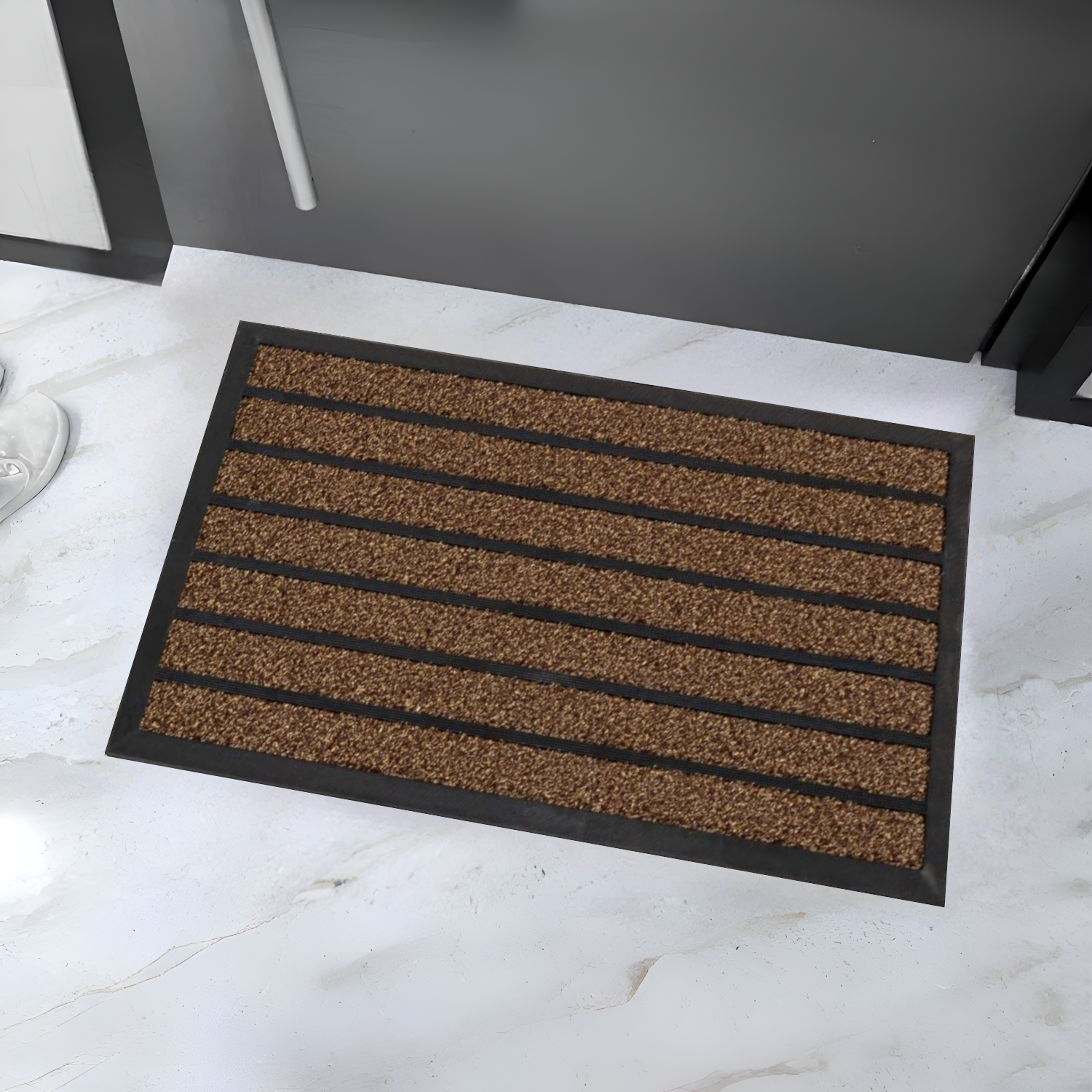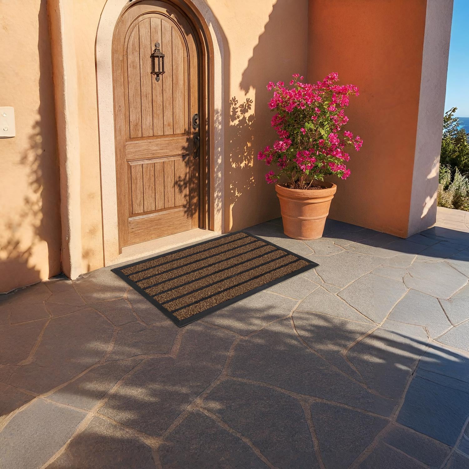 Home Universal® Felpudo de Goma Antideslizante para Exterior y interior – Resistente a Lluvia y Barro, Limpia Zapatos, Alta Durabilidad – Varias Medidas, 40X60CM, Marrón (Diseño a Rayas)