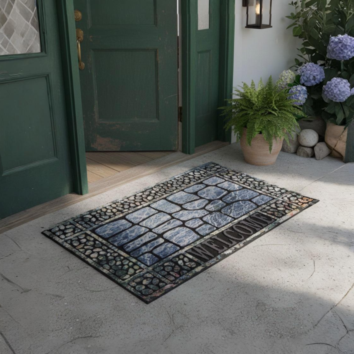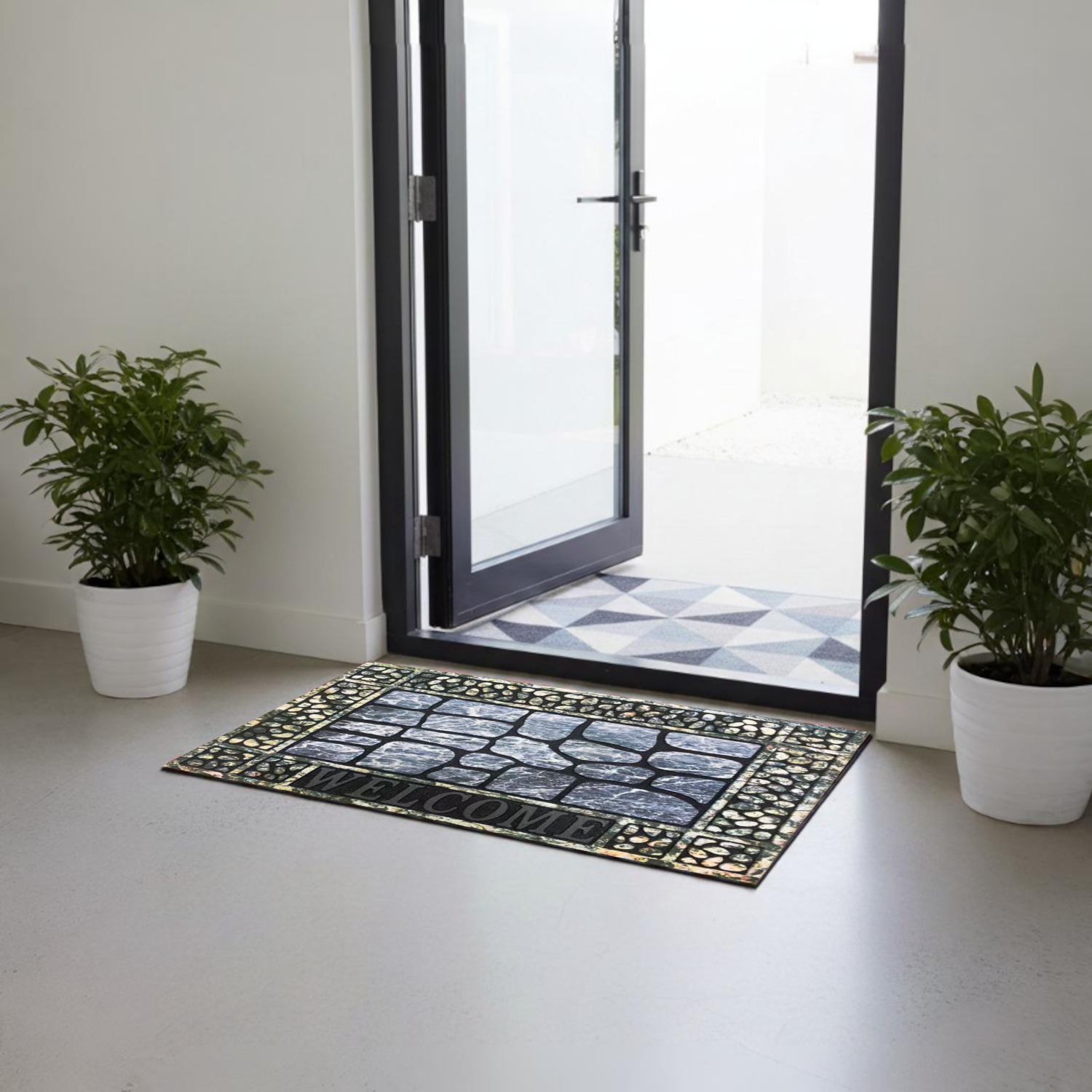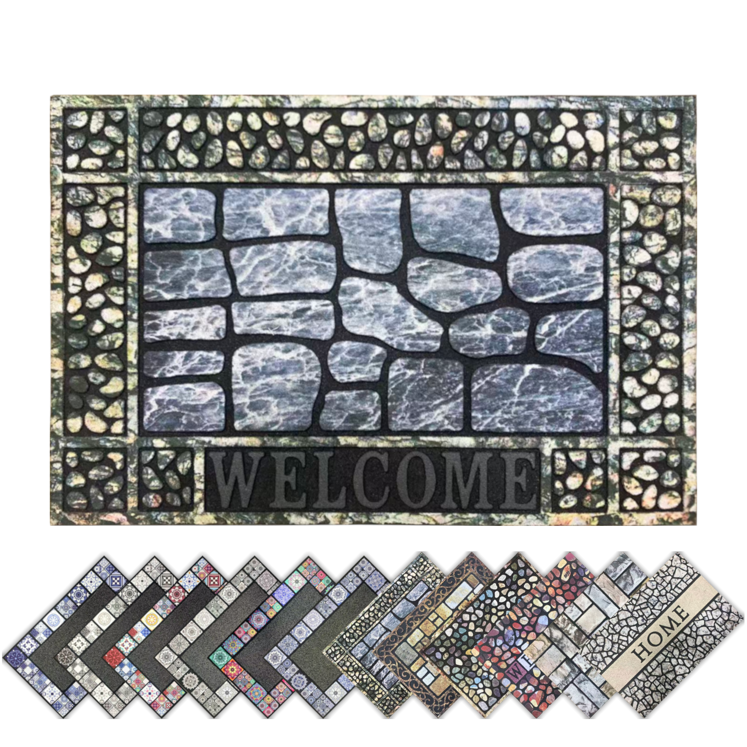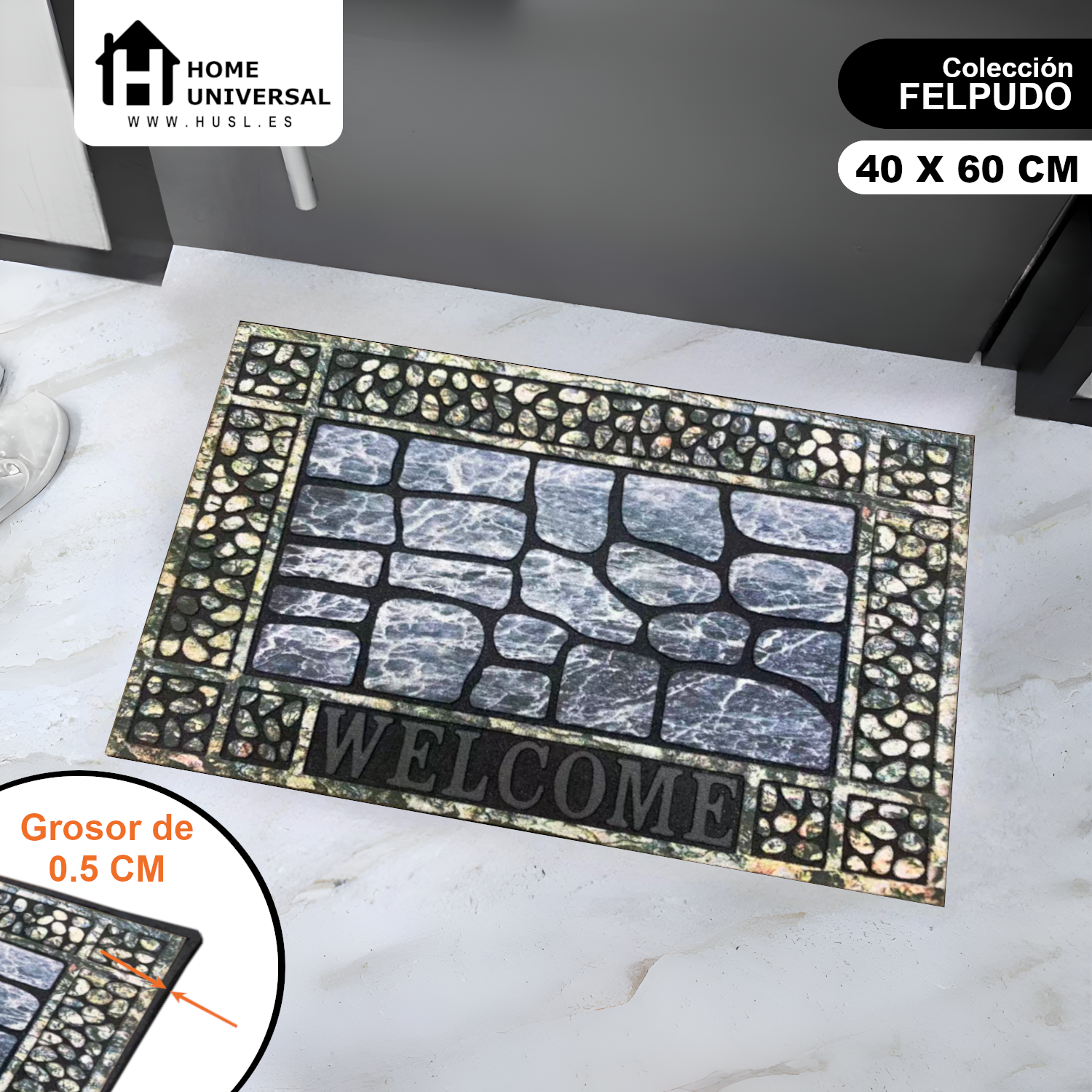 Home Universal® Felpudo de Goma Antideslizante para Exterior y interior – Resistente a Lluvia y Barro, Limpia Zapatos, Alta Durabilidad – Varias Medidas, 40X60CM, WELCOME (Lajas Grises con Marco)