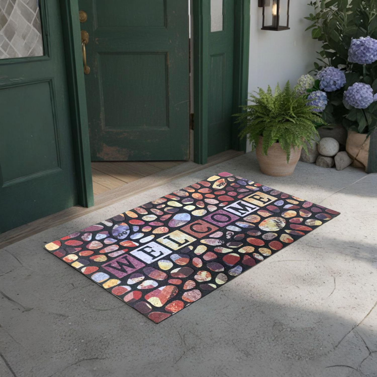 Home Universal® Felpudo de Goma Antideslizante para Exterior y interior – Resistente a Lluvia y Barro, Limpia Zapatos, Alta Durabilidad – Varias Medidas, 40X60CM, WELCOME (Piedra Colorida)