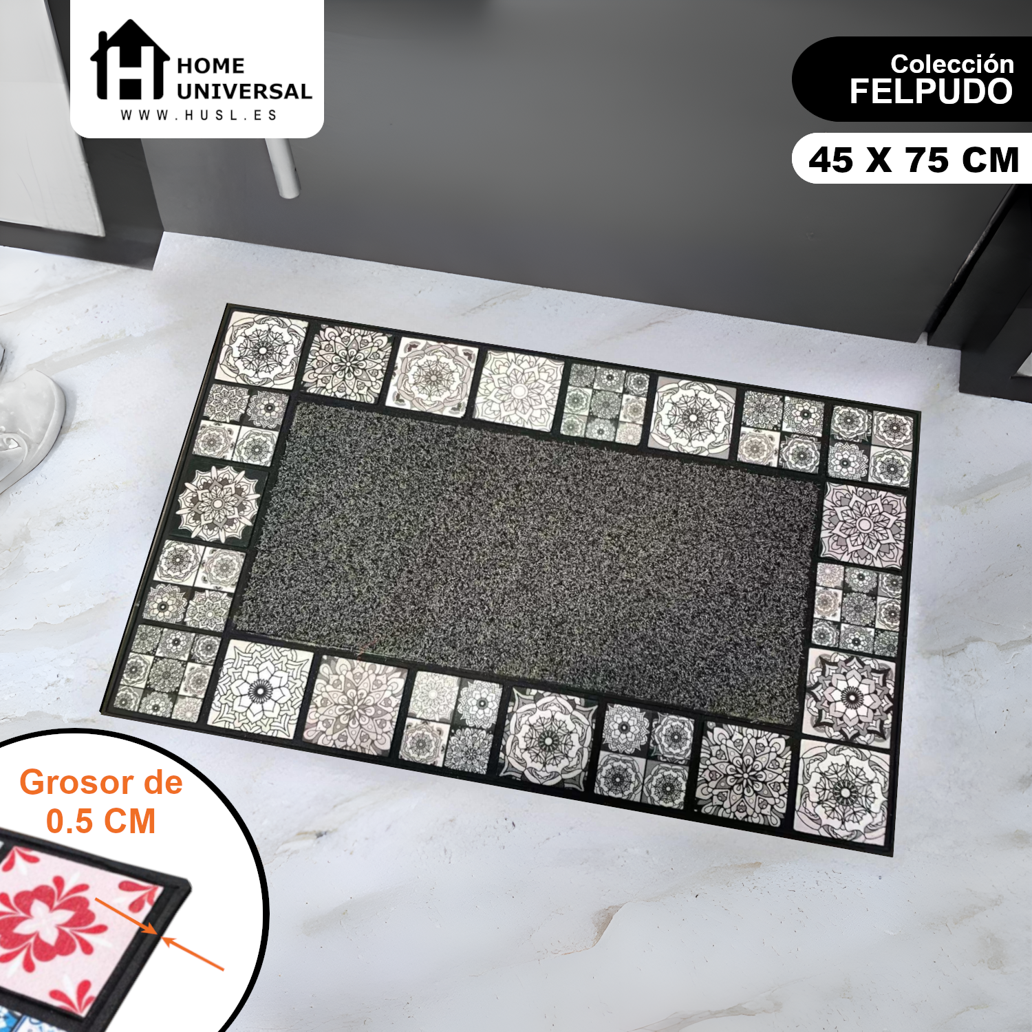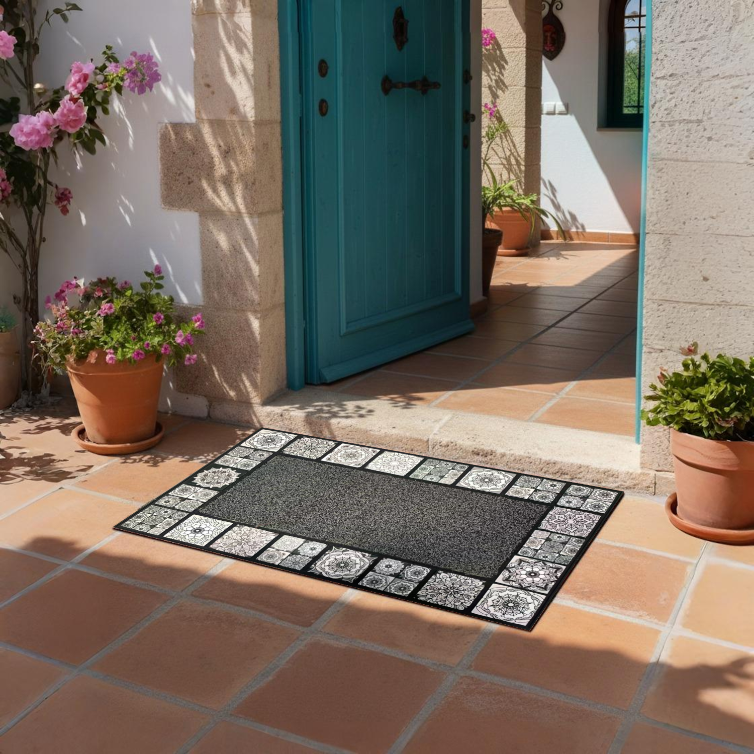 Home Universal® Felpudo de Goma Antideslizante para Exterior y interior – Resistente a Lluvia y Barro, Limpia Zapatos, Alta Durabilidad – Varias Medidas, 45X75CM, Gris (Diseño Mosaico Azulejo)