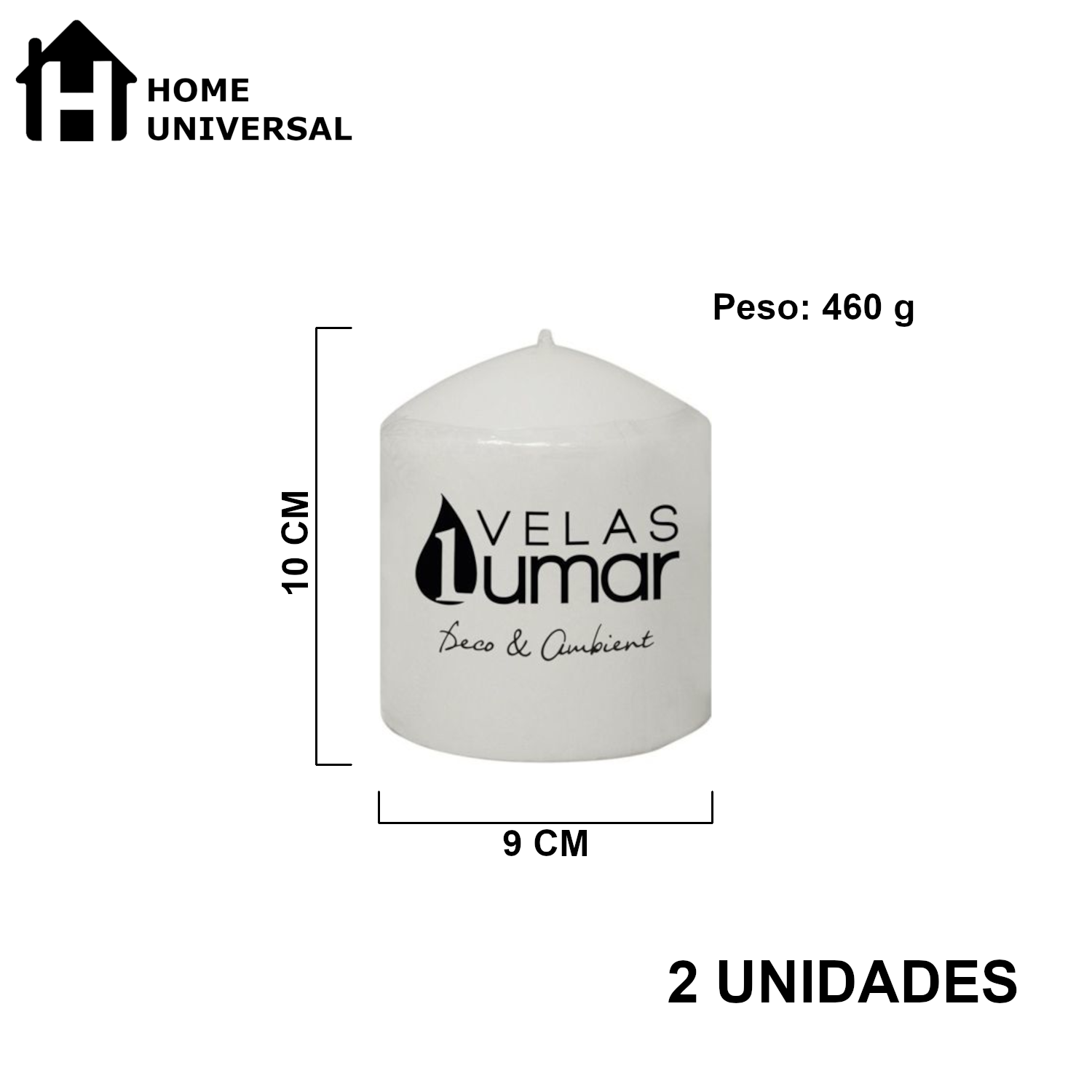 Home Universal® Pack de 2 Velas Lumar Decorativas sin Aroma – Velas Blancas o Rojas de Distintos Tamaños, Ideales para Decoración del Hogar, Bodas, Centros de Mesa y Eventos Elegantes (10X9CM - 455g (2 Unidades · Blanco))