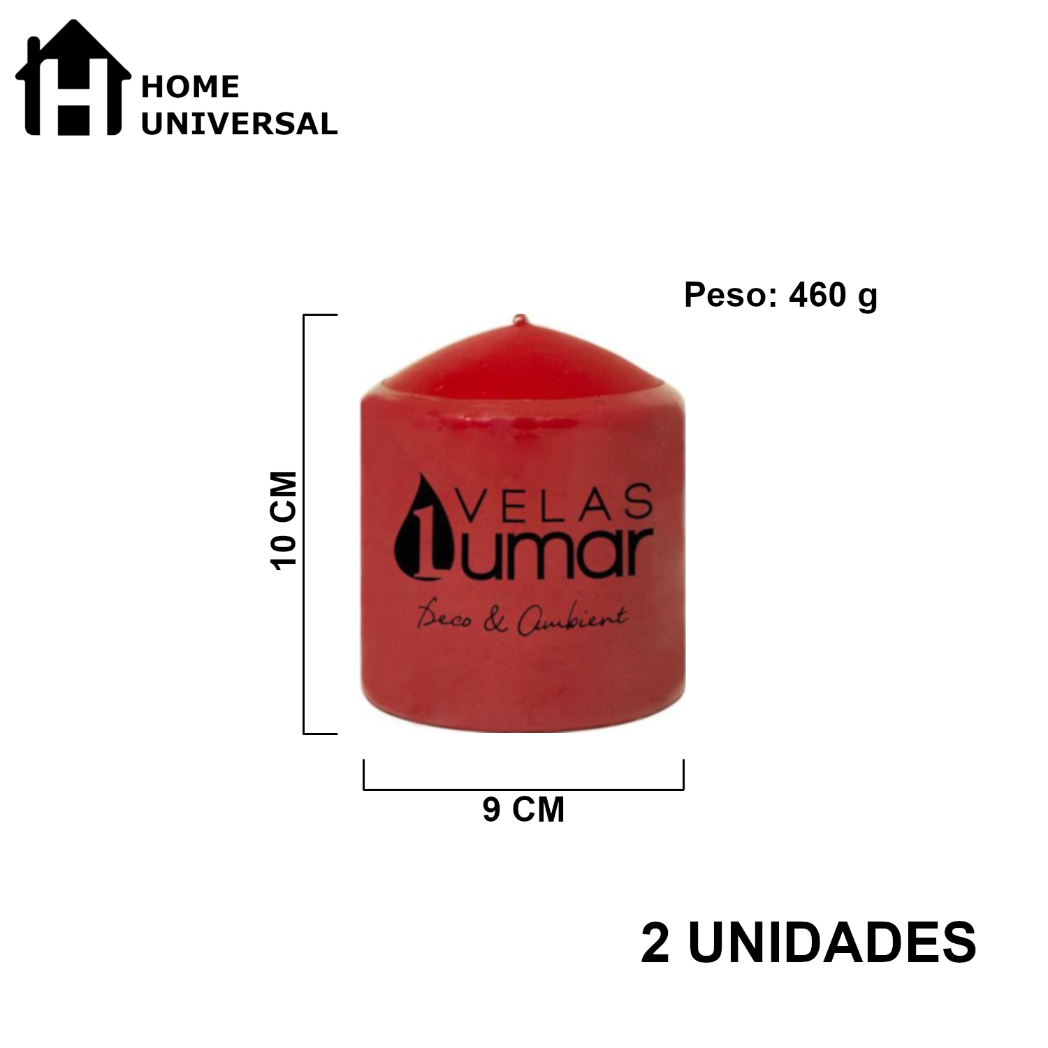 Home Universal® Pack de 2 Velas Lumar Decorativas sin Aroma – Velas Blancas o Rojas de Distintos Tamaños, Ideales para Decoración del Hogar, Bodas, Centros de Mesa y Eventos Elegantes (10X9CM - 455g (2 Unidades · Rojo))
