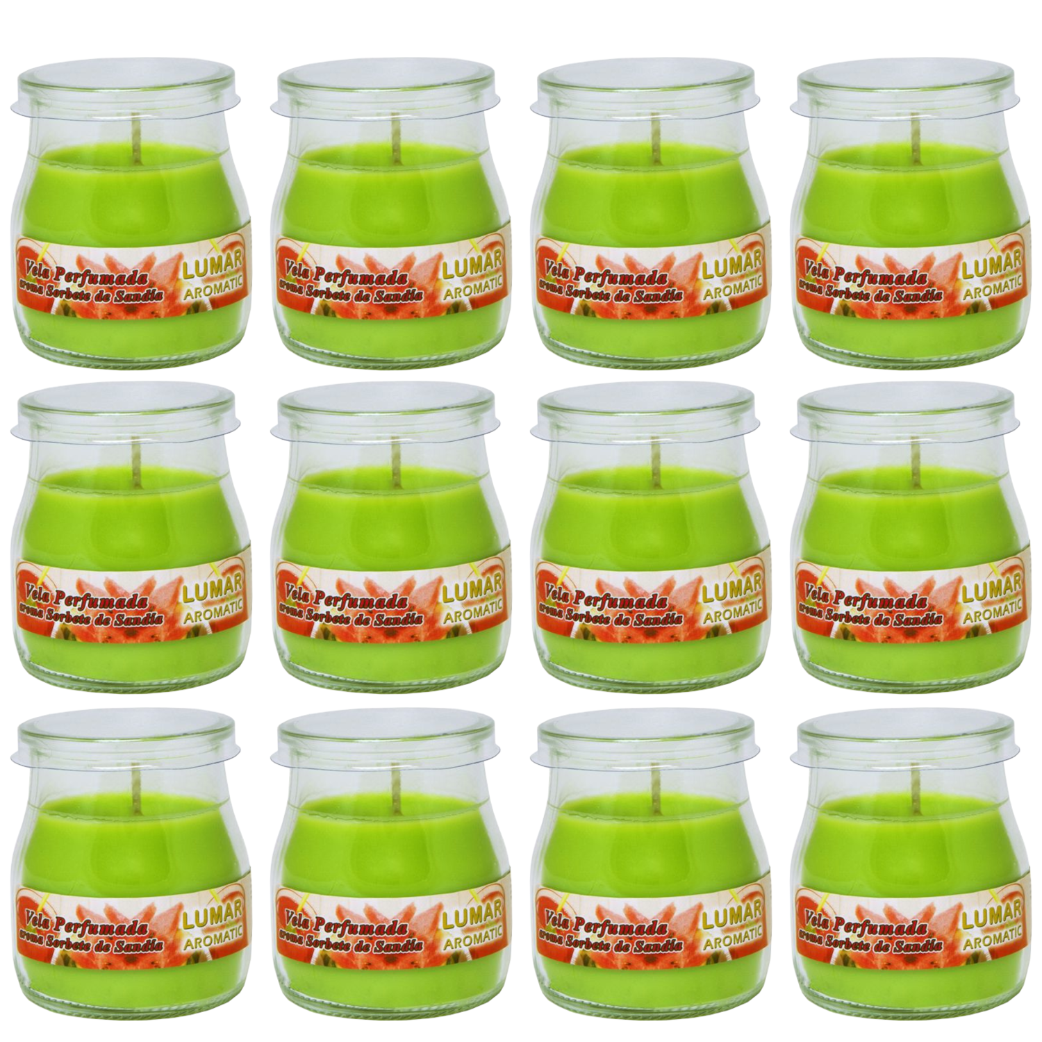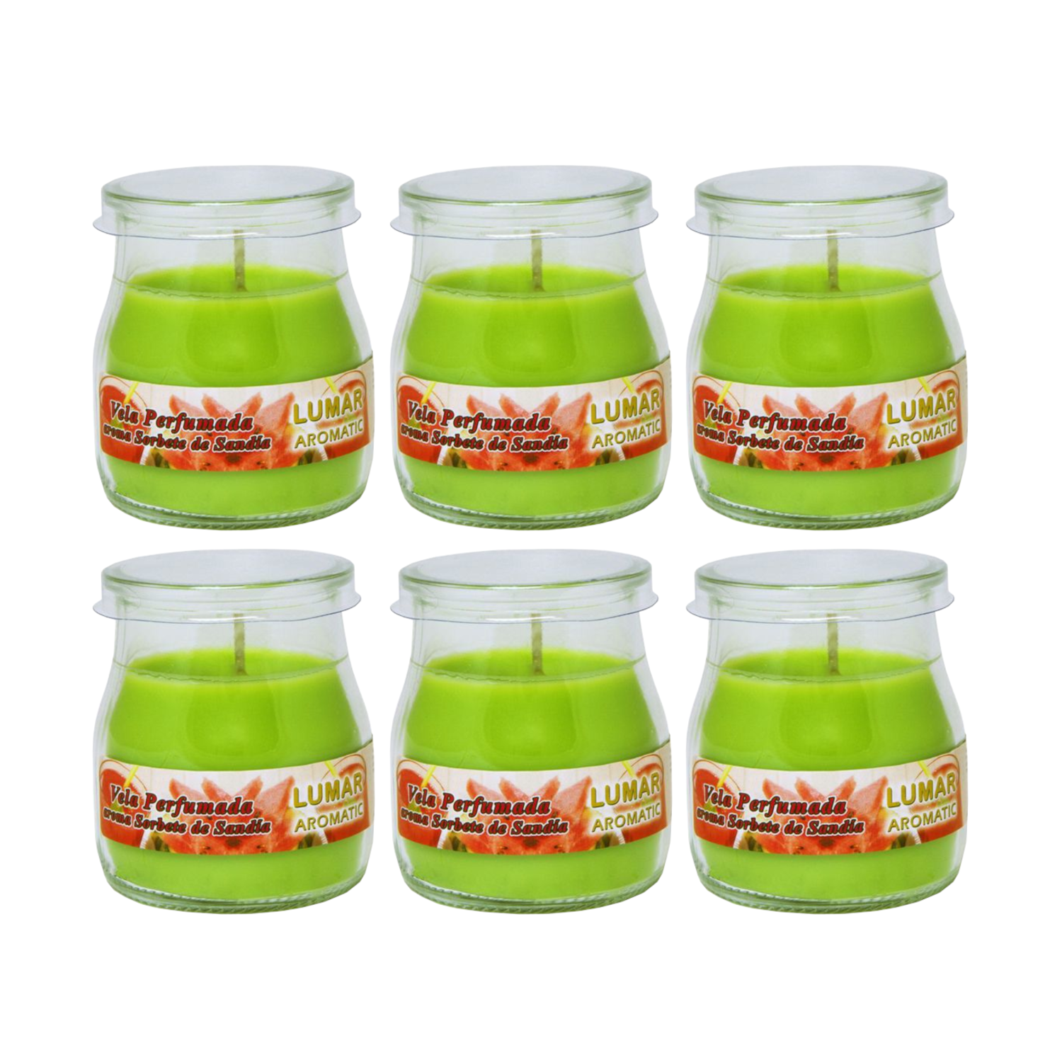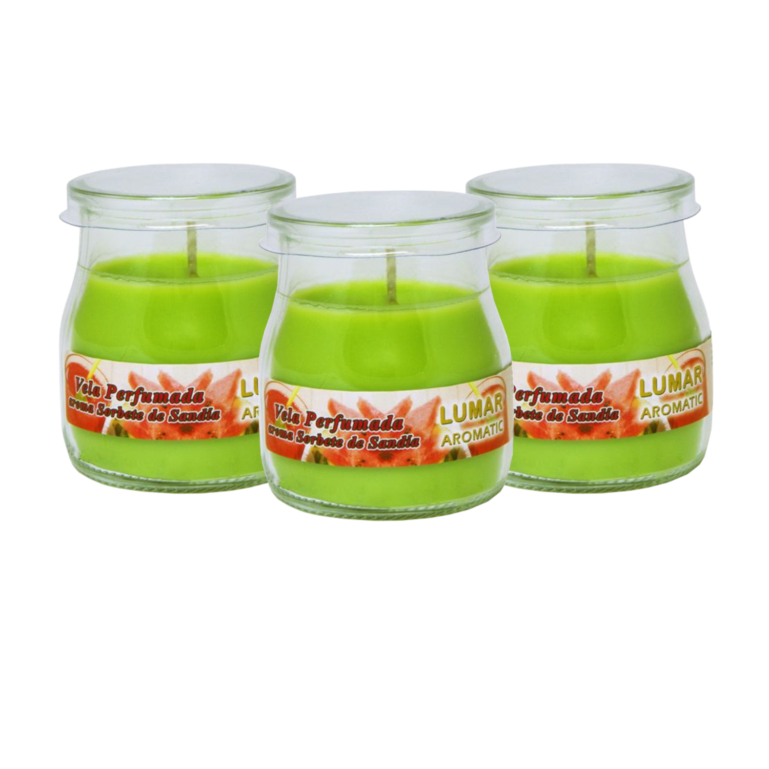 Home Universal® Pack de 3/6/12 Velas Aromáticas en Vaso de Cristal Reciclable LUMAR AROMATIC – 24h de Duración por Vela – Cera Vegetal Perfumada – 16 Fragancias Disponibles – Fabricadas en España – 7x6cm (Sorbete de Sandía)