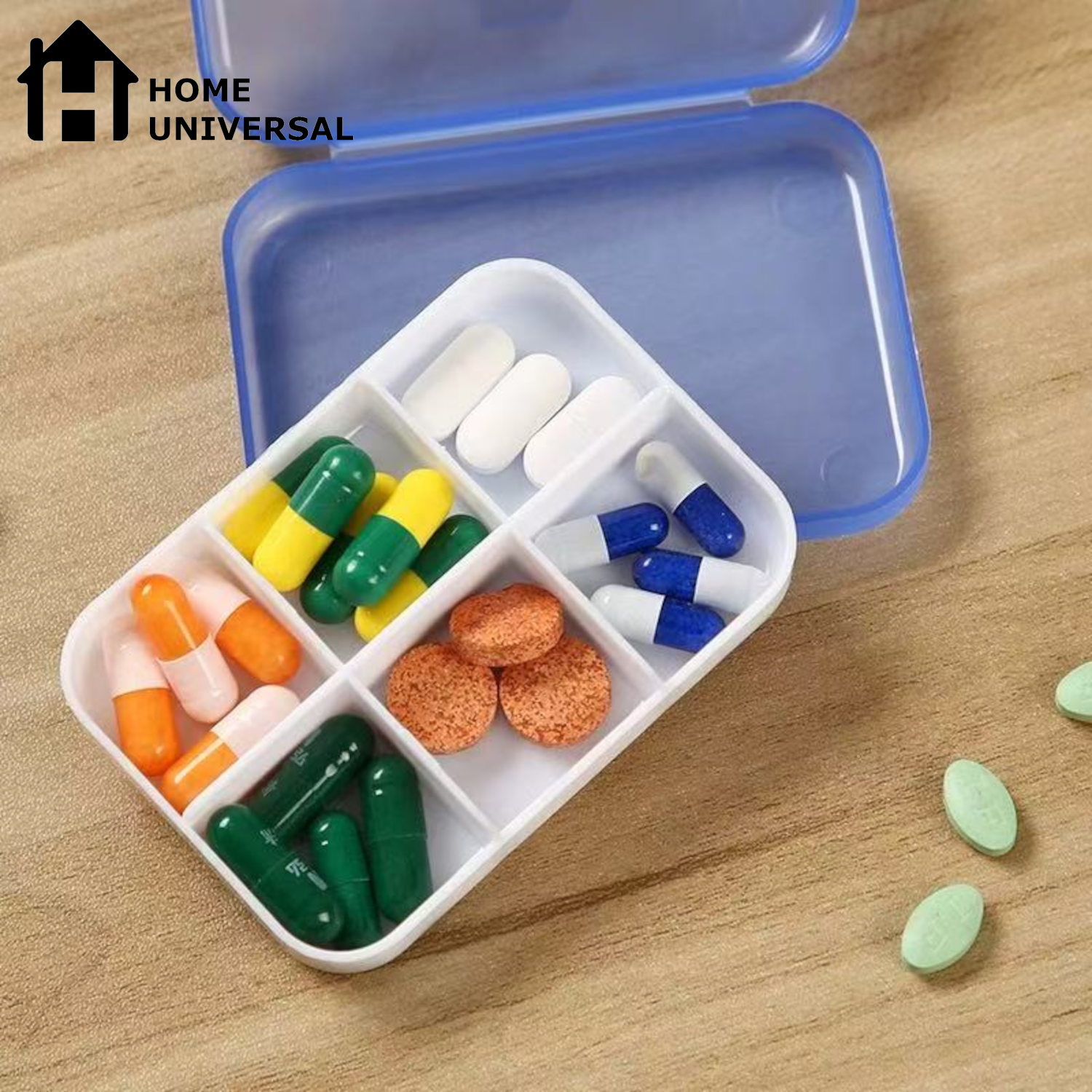 Home Universal® Pastillero portátil y semanal con 6, 7 o 28 compartimentos | Caja organizadora de pastillas con cortador integrado – Diferentes colores y formatos (Pastillero portátil 6 compartimentos - Azul)