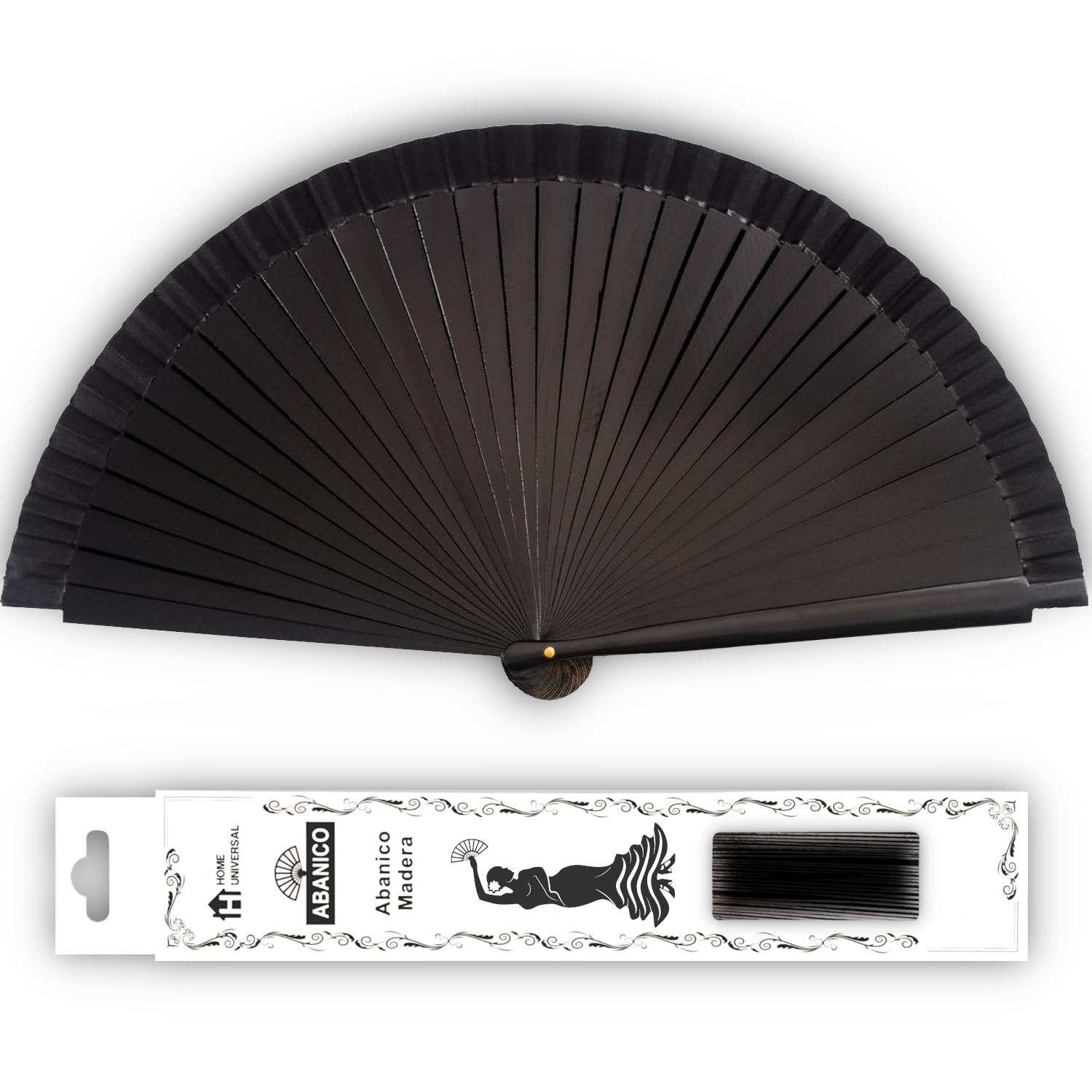 Home Universal ® Abanico Madera Español con Tela Lisa 23cm, Detalles para los Invitados, Regalos de Boda, Fiestas, Comuniones y Otros Eventos (Negro)