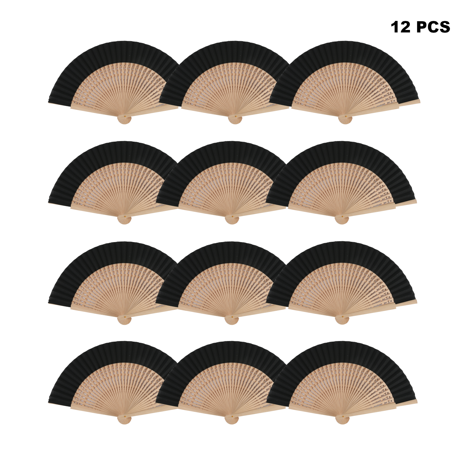 Home Universal ® Pack 12 Unidades Abanicos Madera con Tela Lisa 23cm, Detalles para los Invitados, Regalos de Boda, Fiestas, Comuniones y Otros Eventos (Negro troquelado con caja)