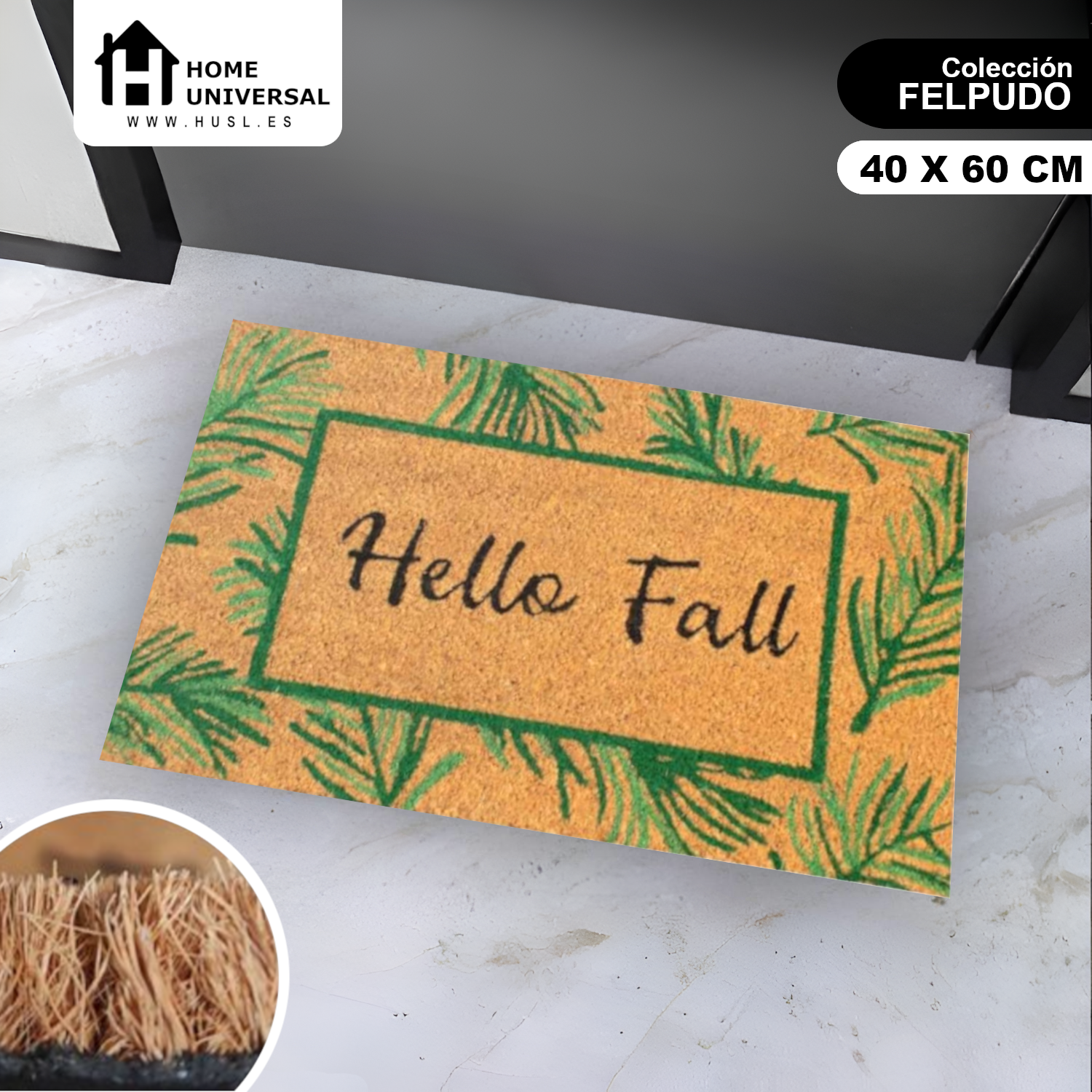 HOME UNIVERSAL | Felpudos de Fibra de Coco con Base Antideslizante 60x40x1.5CM (Hello Fall)